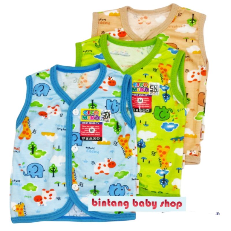 CICO MIKO 3 Pcs Baju Bayi Buntung Kancing Depan Uk M-L SNI