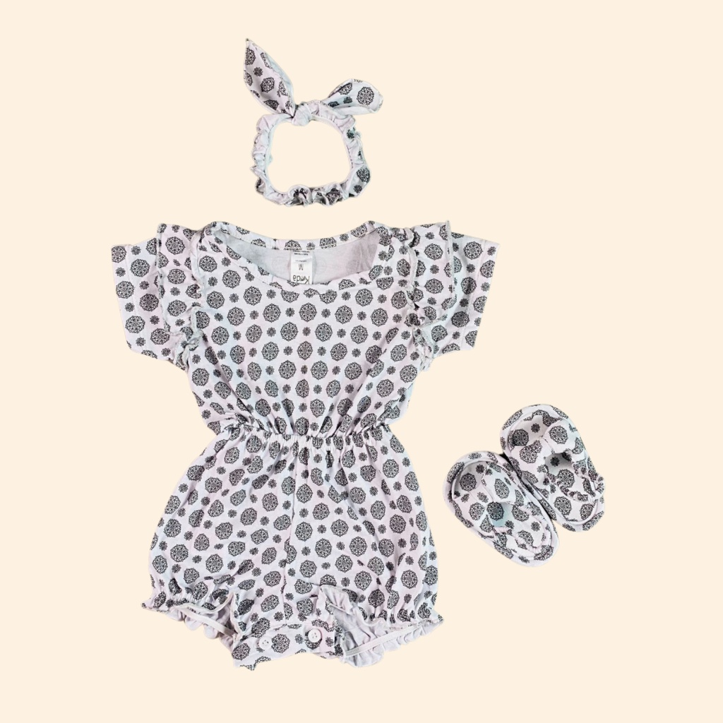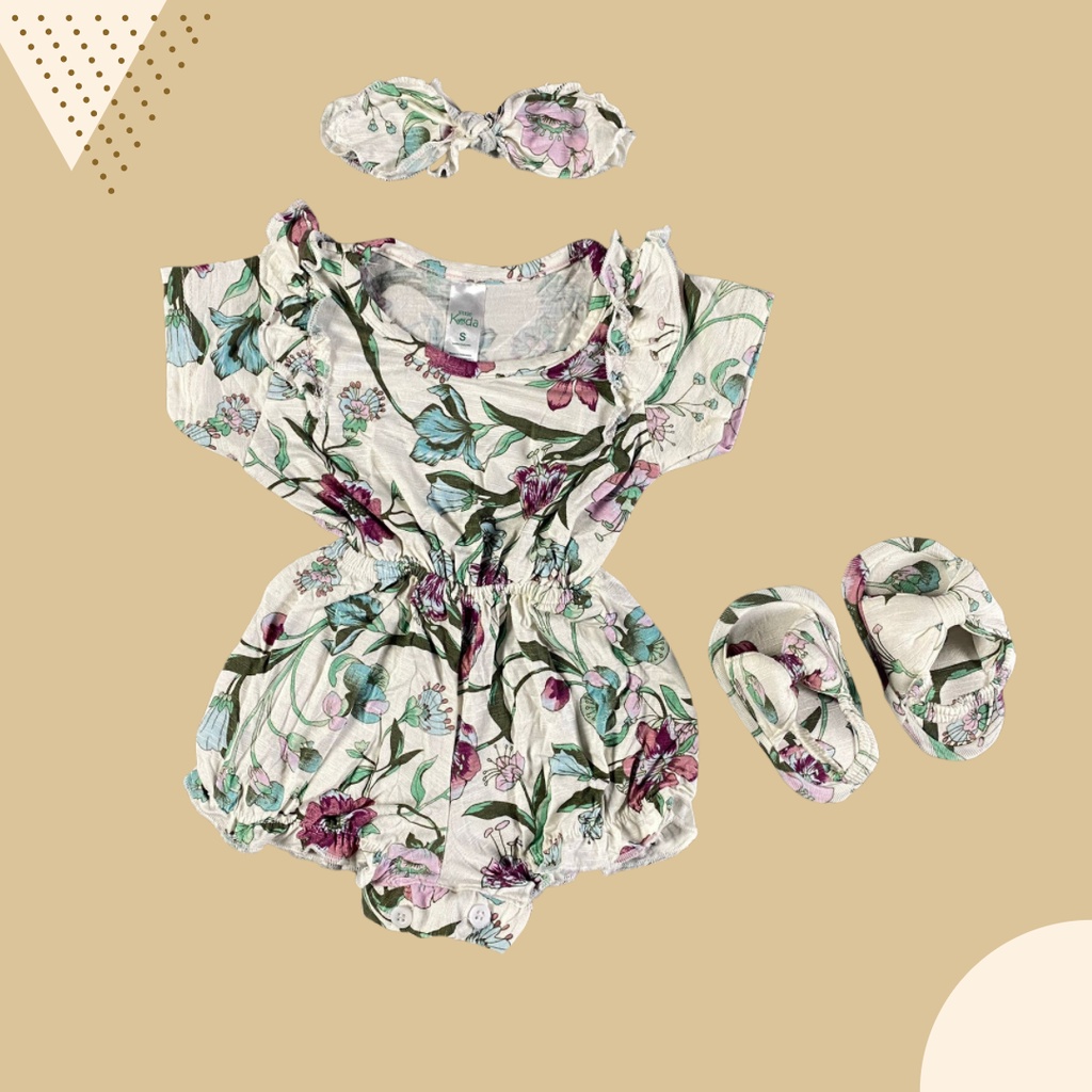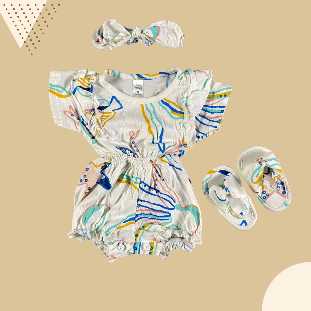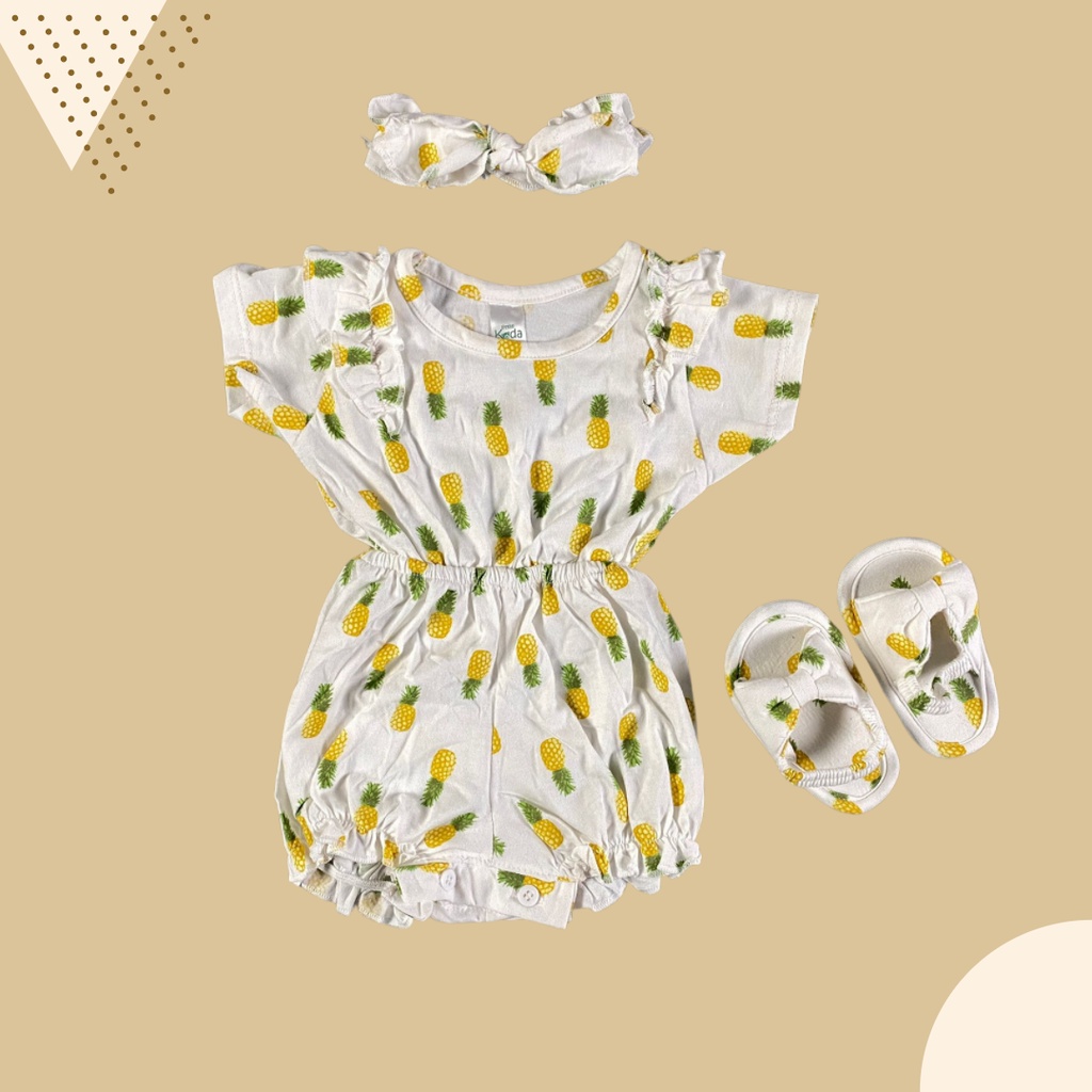 Harga 3-12BLN JUMPSUIT BAYI LUNA + Headband dan Sendal by LITTLE KODA 3IN1 SET (SNI)