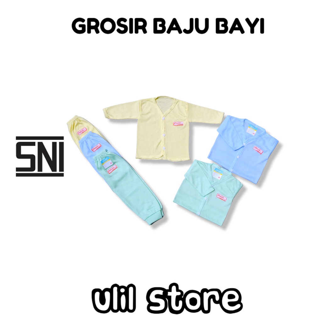 6PC (3 Stel) Grosir Baju Bayi Panjang Newborn ASR Baby SNI Polos Usia 0-4 Bulan