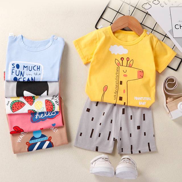Harga ⭐TOKO1234⭐ NEW ARRIVALS !!! Baju Jumper Pendek Kaos Dengan Celana Piyama Anak Bayi Dengan Motif.