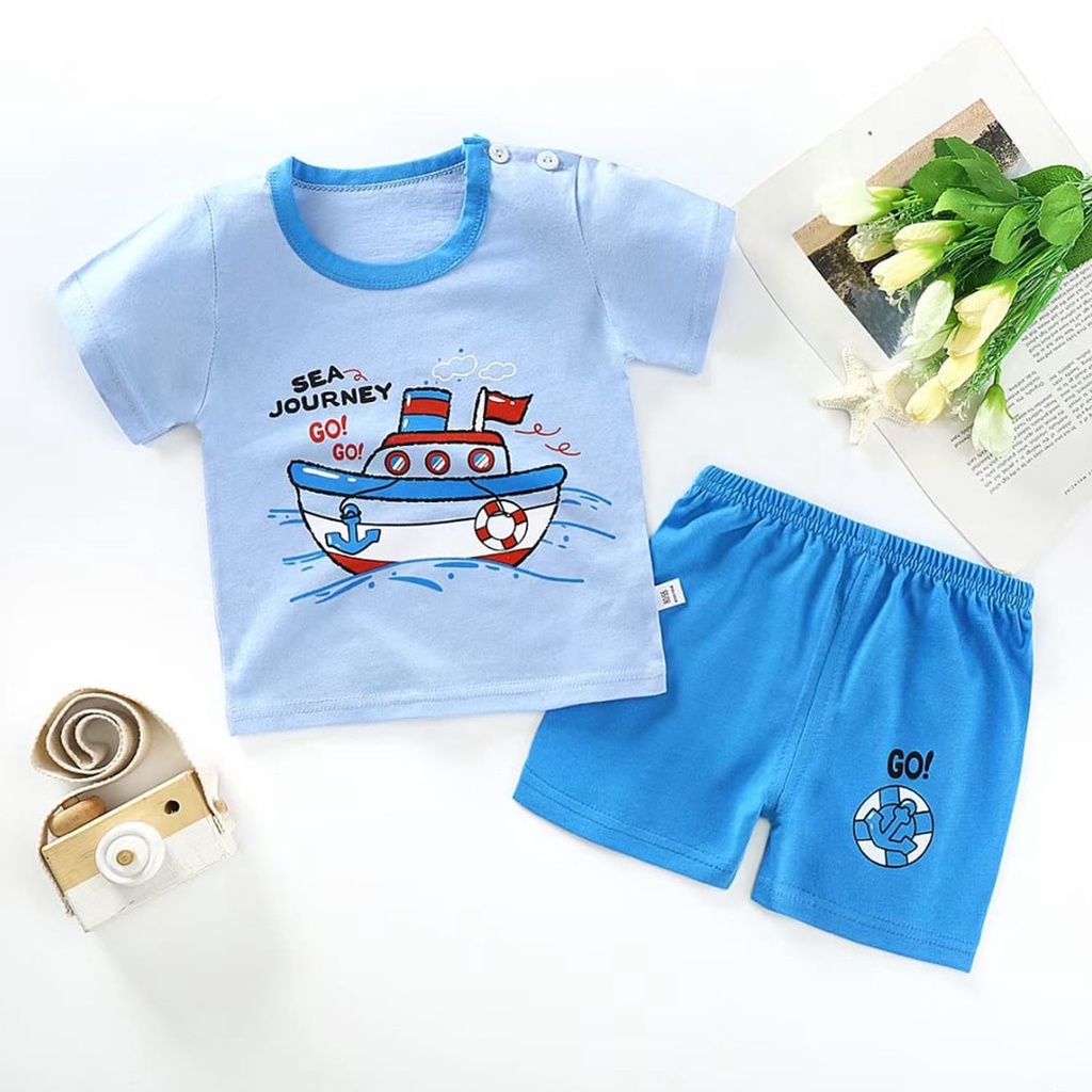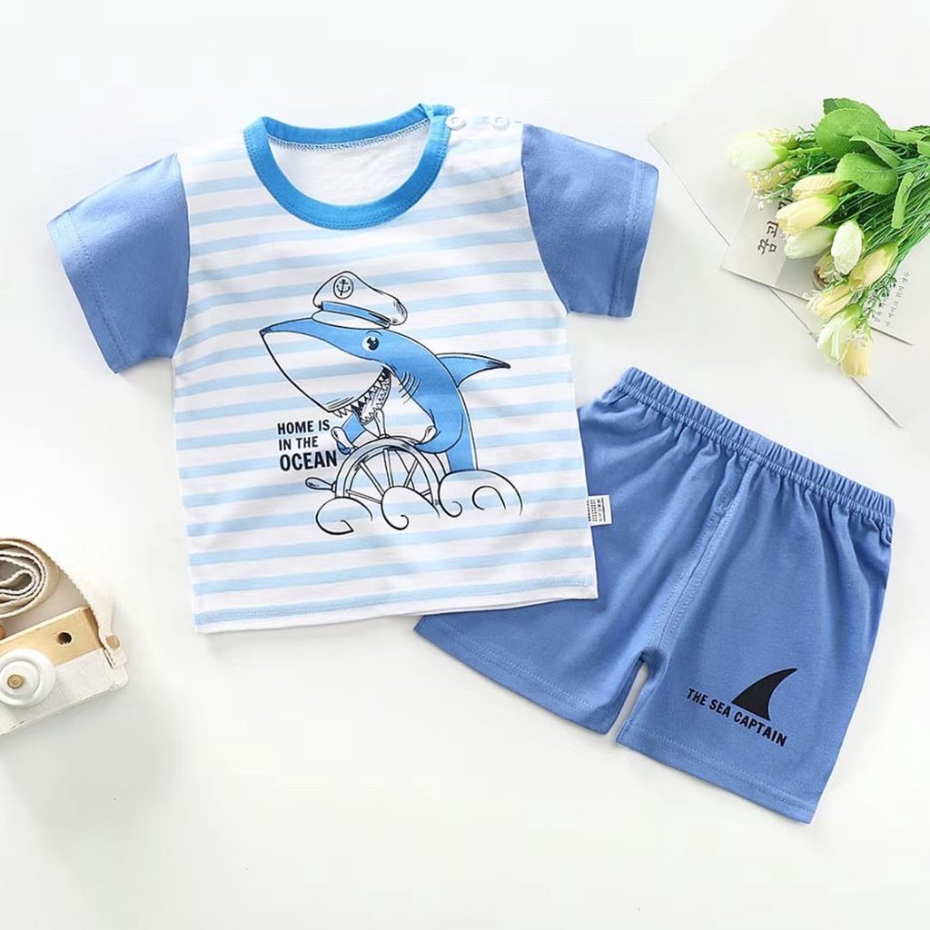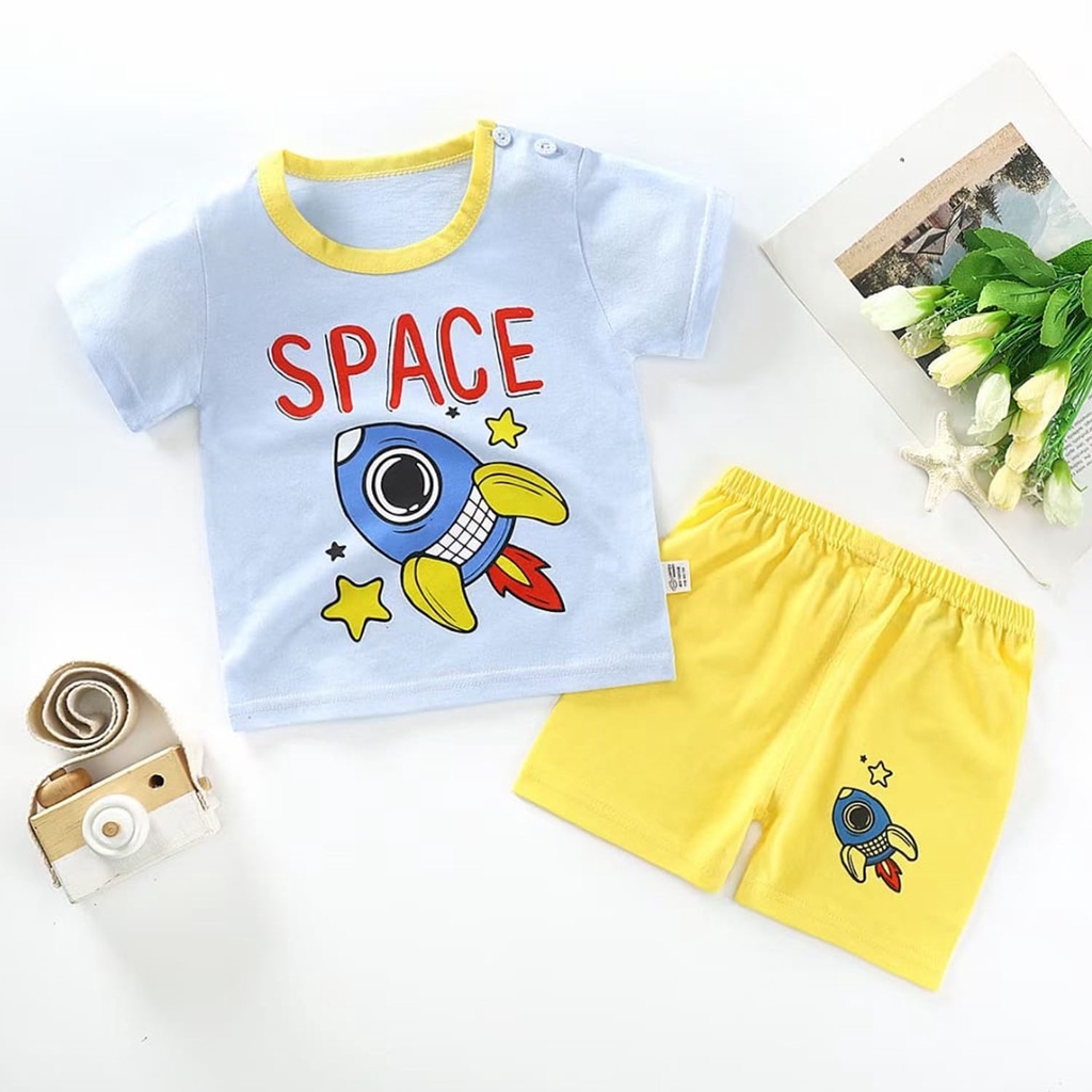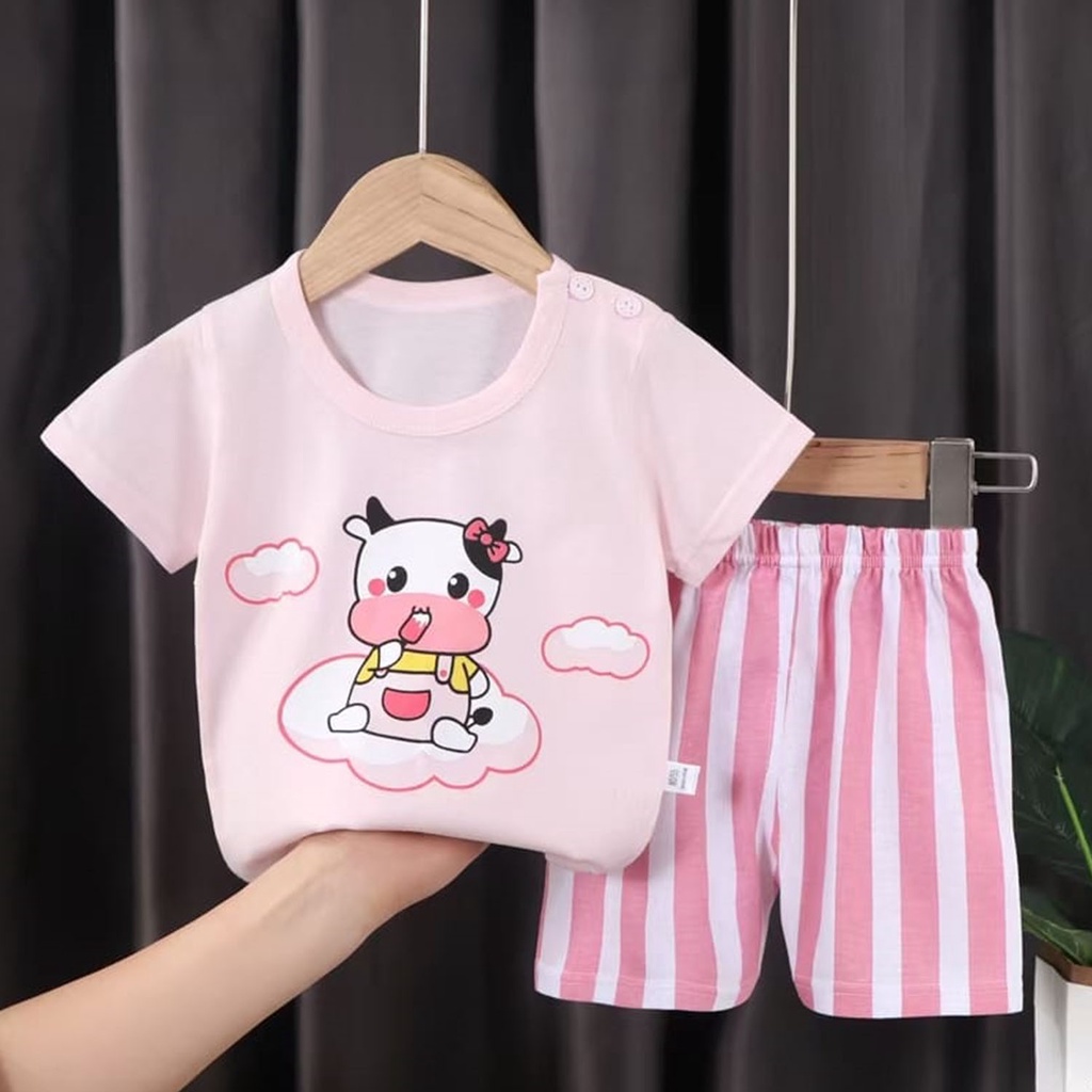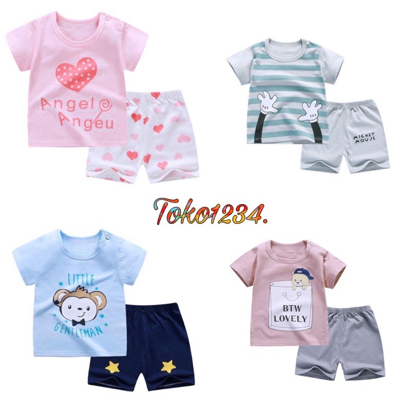 ❤TOKO1234.❤ Baju Jumper Pendek Kaos Dengan Celana Piyama Anak Bayi