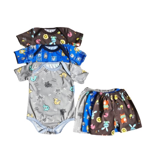 Rifani 3PC Baju Bayi Lengan Kutung Newborn Fulk Print Lembut Nyaman dan SNI
