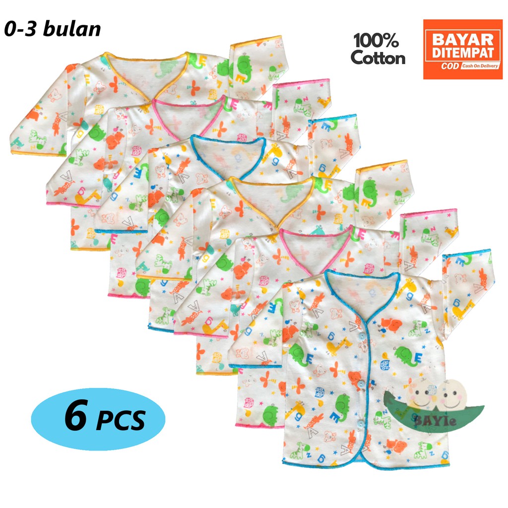 Harga BAYIe - 6 Pcs Baju Bayi Lengan Panjang New Born 100% Katun Motif TABUR NECI RYN umur 0-3 bulan