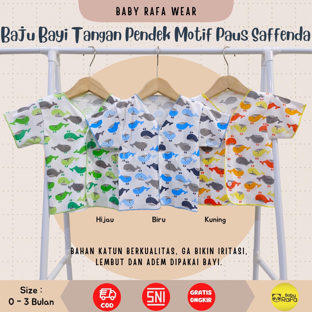 BAJU BAYI TANGAN PENDEK MOTIF PAUS SIZE 0 - 3 BULAN SNI SAFFENDA ( PAUS )