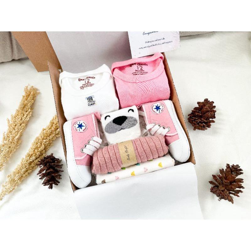 Harga Hampers Kado baby bayi perlengkapan pakaian celana sepatu topi baju bayi newborn baru lahir perempuan laki laki