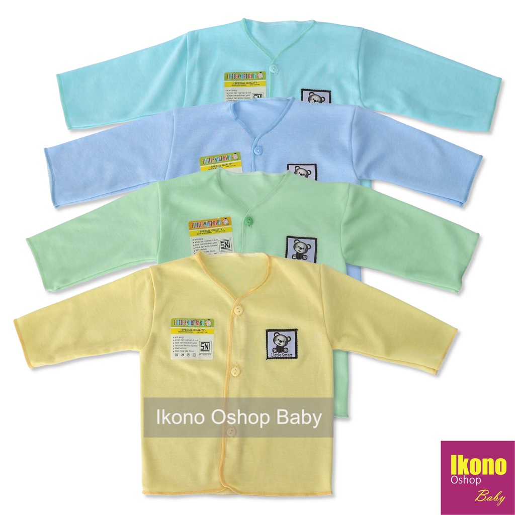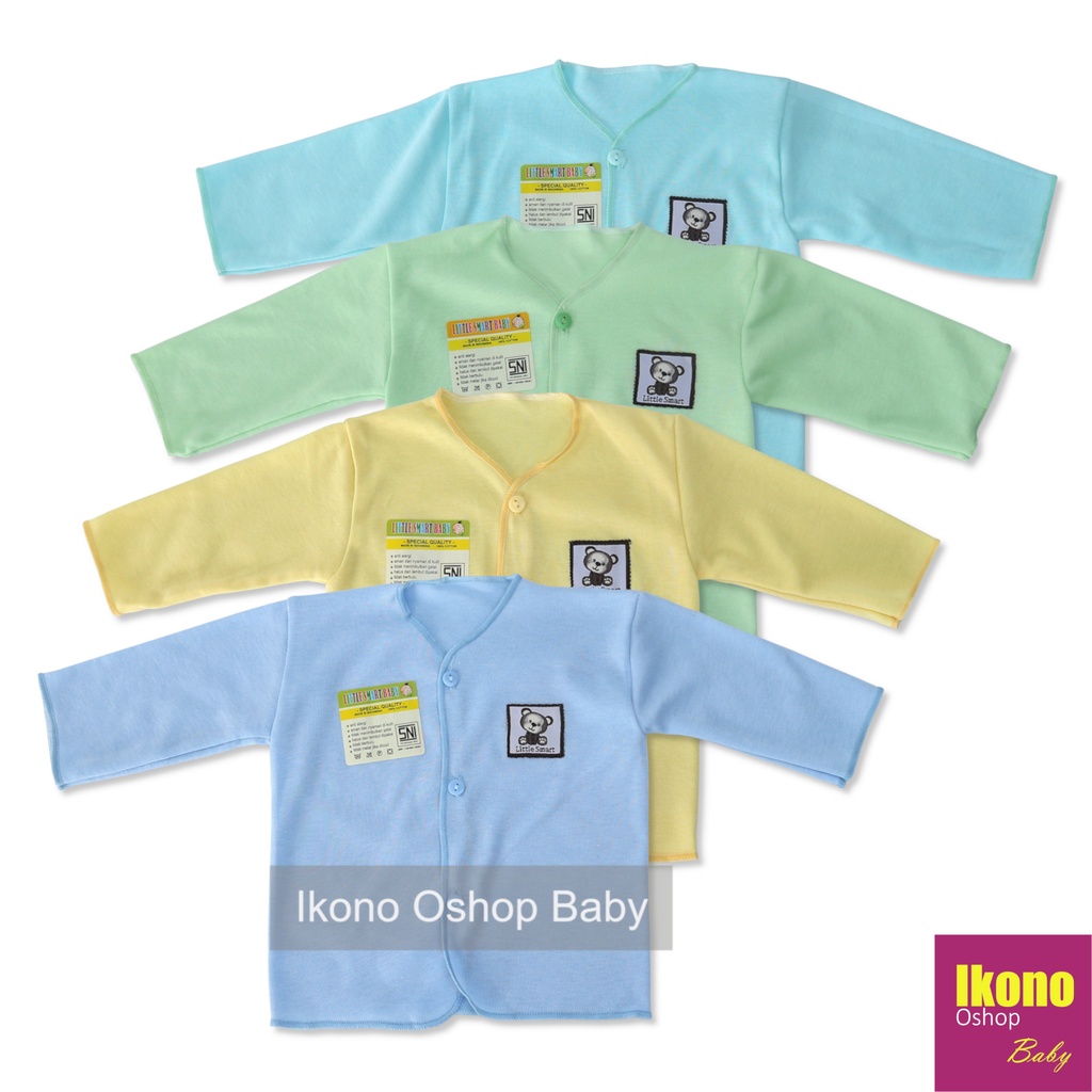 Kelebihan - Kelebihan membeli Ikono 4 Pcs Baju Bayi Newborn Perempuan Laki Laki Lengan Panjang Warna Polos Little Smart di Toko ini
