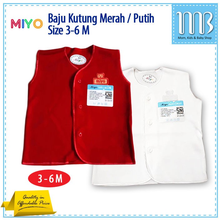 MIYO - 2 pcs Baju Bayi Kutung Pendek warna Merah Putih Size 3 - 6 tahun